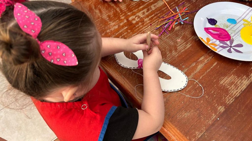 La propuesta estuvo a cargo de Carina Flores, quien explicó que la actividad tiene como objetivo promover la expresión en una etapa clave de la vida como lo es la primera infancia, donde están más predispuestos a las propuestas creativas. El taller contó con la participación del personal de la institución, quienes se sumaron a la iniciativa que invitó a trabajar en la libre decoración de antifaces, utilizando diversos materiales. “Buscamos generar una actividad que lleva a crear, a incentivar en ellos su imaginación. Sabemos que los niños hoy por hoy, desde muy temprana edad, están en la tecnología y es un momento como para sacarlos y aprovechar este día”, expresó Flores.
