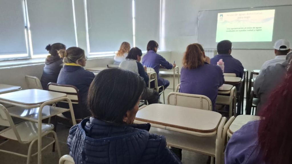 Durante el encuentro se generó un espacio de intercambio con los participantes, abordando aspectos como el consumo promedio de agua en los hogares, las fuentes de abastecimiento en Caleta Olivia y los volúmenes que se desechan diariamente. En este marco, se analizaron las posibilidades de reutilización según la calidad del agua, principalmente para riego de cortinas forestales y plantas ornamentales.