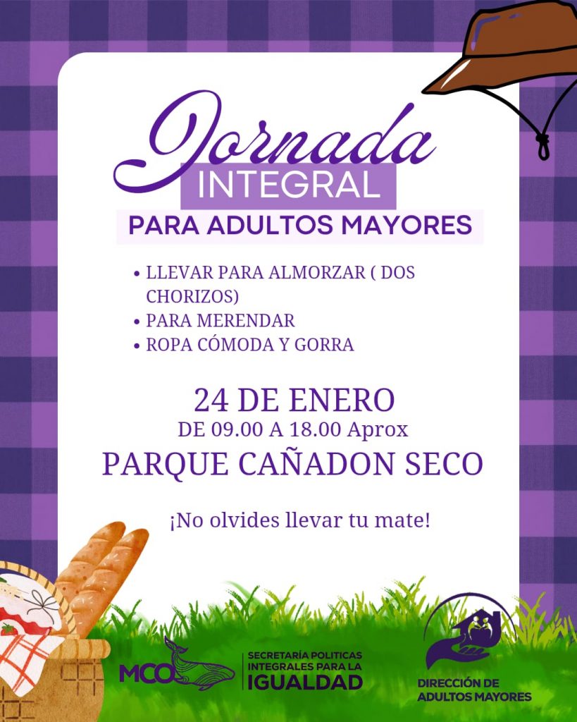 Este sábado 24 de enero, el equipo de la Secretaría de Políticas Integrales para la Igualdad, junto a la Dirección de Adultos Mayores, desarrollará una actividad donde realizarán una visita al Parque de Cañadón Seco. Se trata de una jornada recreativa que contará con una serie de propuestas al aire libre.