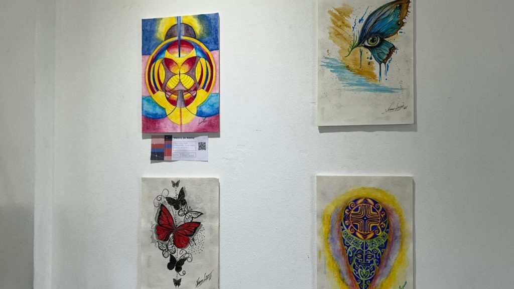 La muestra reúne obras realizadas en técnicas mixtas, entre ellas óleos en acrílicos, acuarelas y texturados, permitiendo al público recorrer una variedad de composiciones que reflejan la esencia creativa de la artista.